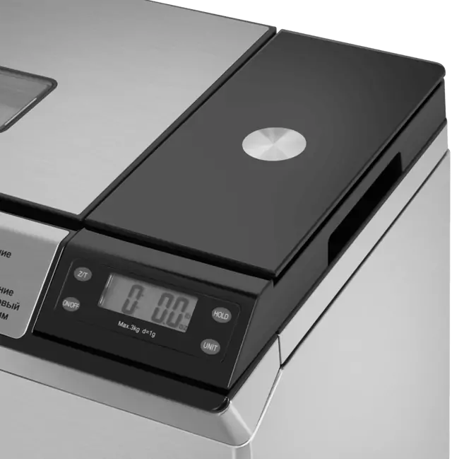 Комплектация: мерный стакан, мерная ложка, крюк для извлечения лопатки, кухонные весы, батарейки для весов.